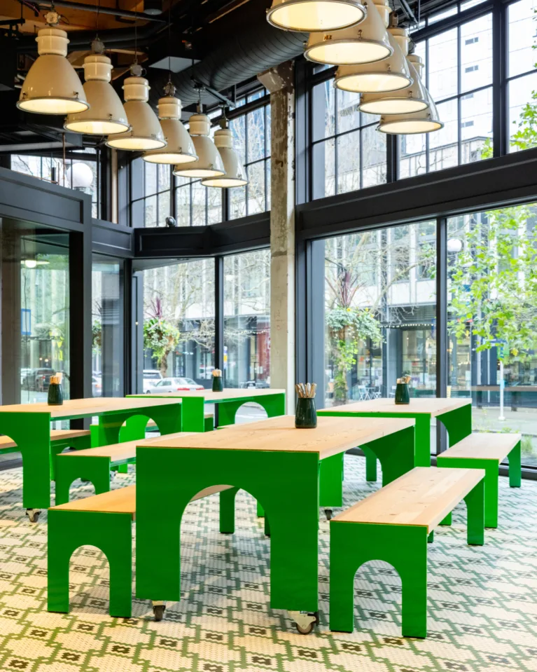 We offer limited reservations for our three long tables along Occidental Avenue for parties of 6 and larger on non-stadium event days. These tables can accommodate between 6 and 24 guests seated, or maximum 30 guests with standing room. Click below for more information and to book.